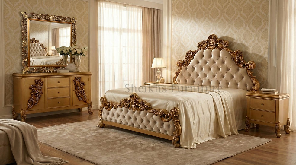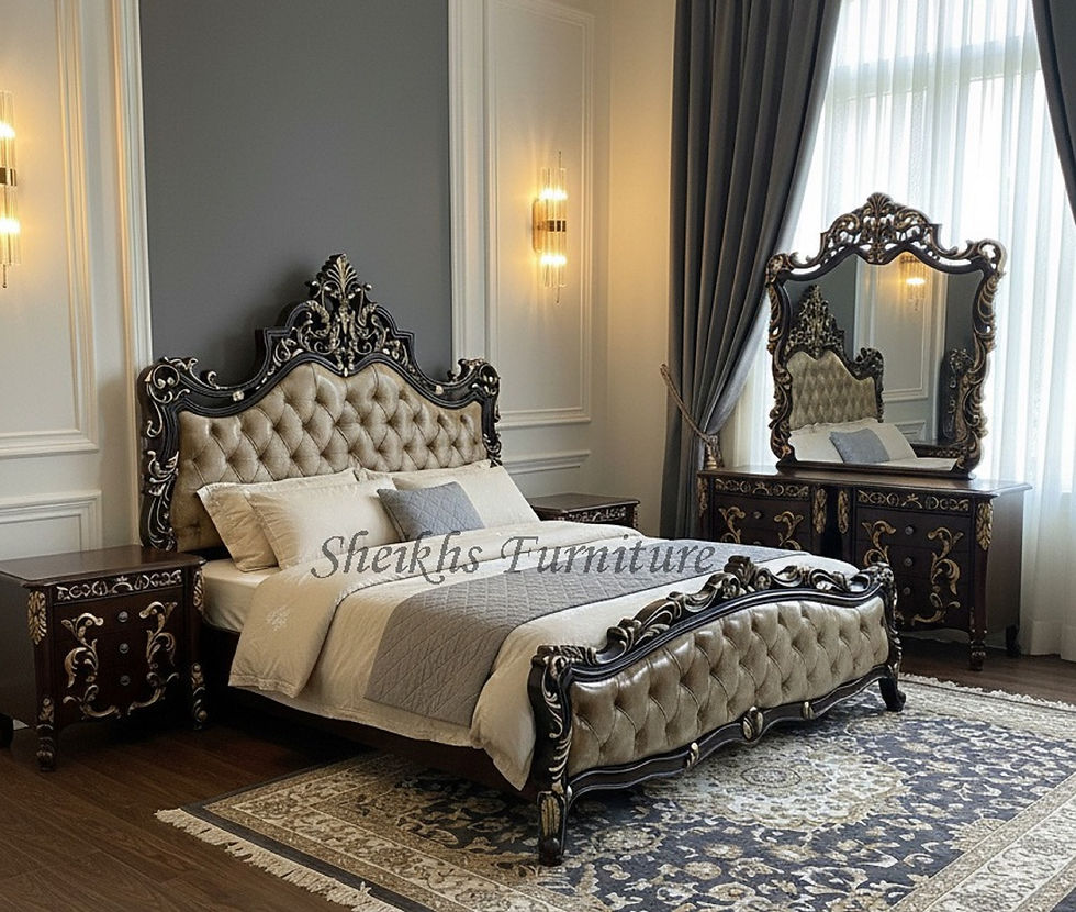 Welcome to the Cushion & Cane Beds category at Sheikhs Furniture, where the enduring beauty of Sheesham wood meets luxurious comfort and intricate artisanal detailing. This exquisite collection offers more than just a bed; it presents a masterpiece that combines plush upholstery with the timeless charm of hand-woven cane, creating a focal point of sophisticated comfort in your bedroom.